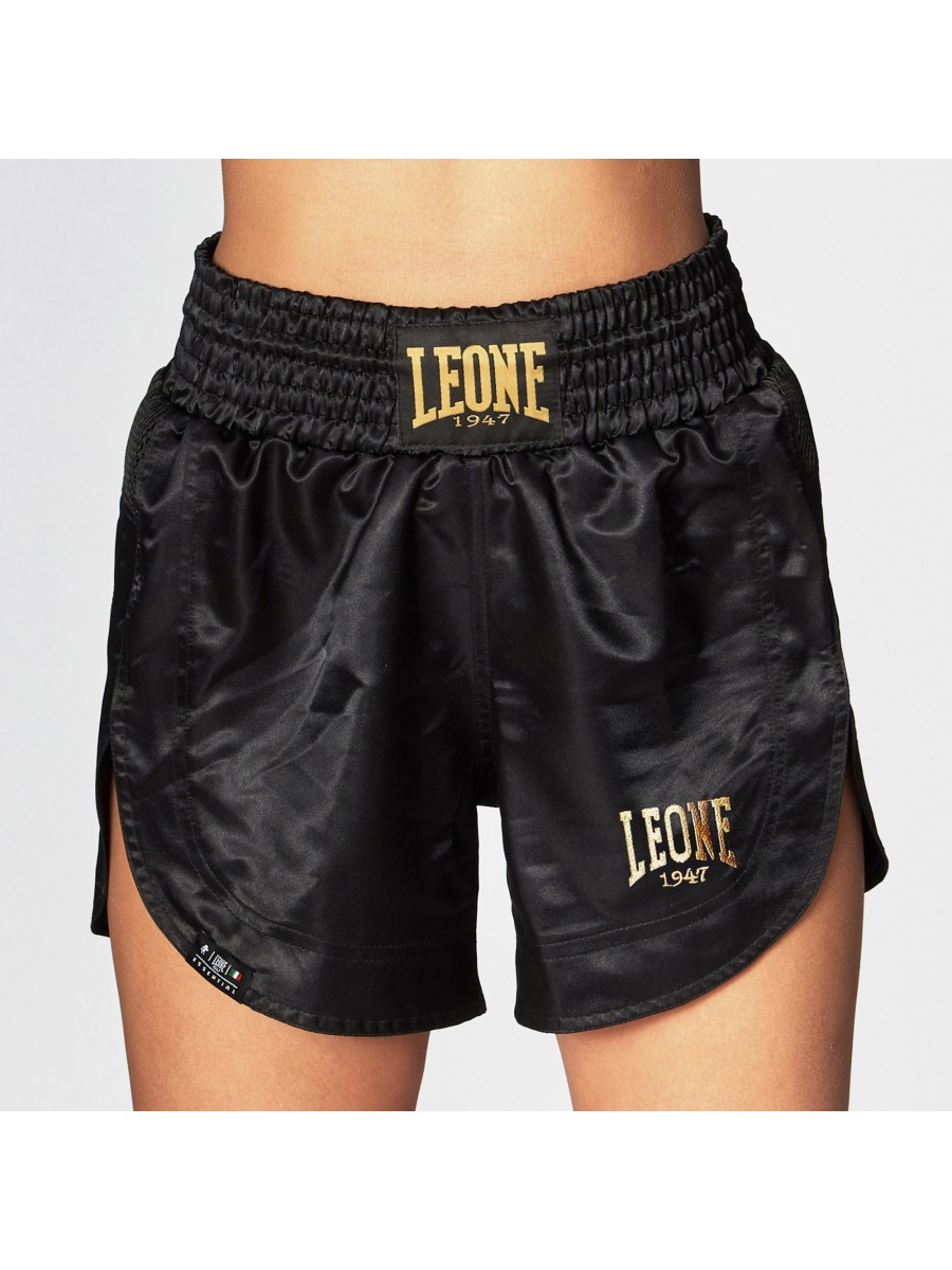 L’eleganza del nero, lo stile dei dettagli in oro, la tradizione di un brand italiano...in una parola: Essential.Versatile pantaloncino da kick-boxing / muay thai in raso, con inserto in mesh sul retro. Speciale label in oro cucita sulla cintura super elasticizzata, che garantisce sostegno e tenuta nel tempo. Lo spacco sinuoso agevola i movimenti oltre a dare quel tocco di femminilità al capo. Discipline: Kick boxing, muay thai Genere: Donna Materiale: Poliestere