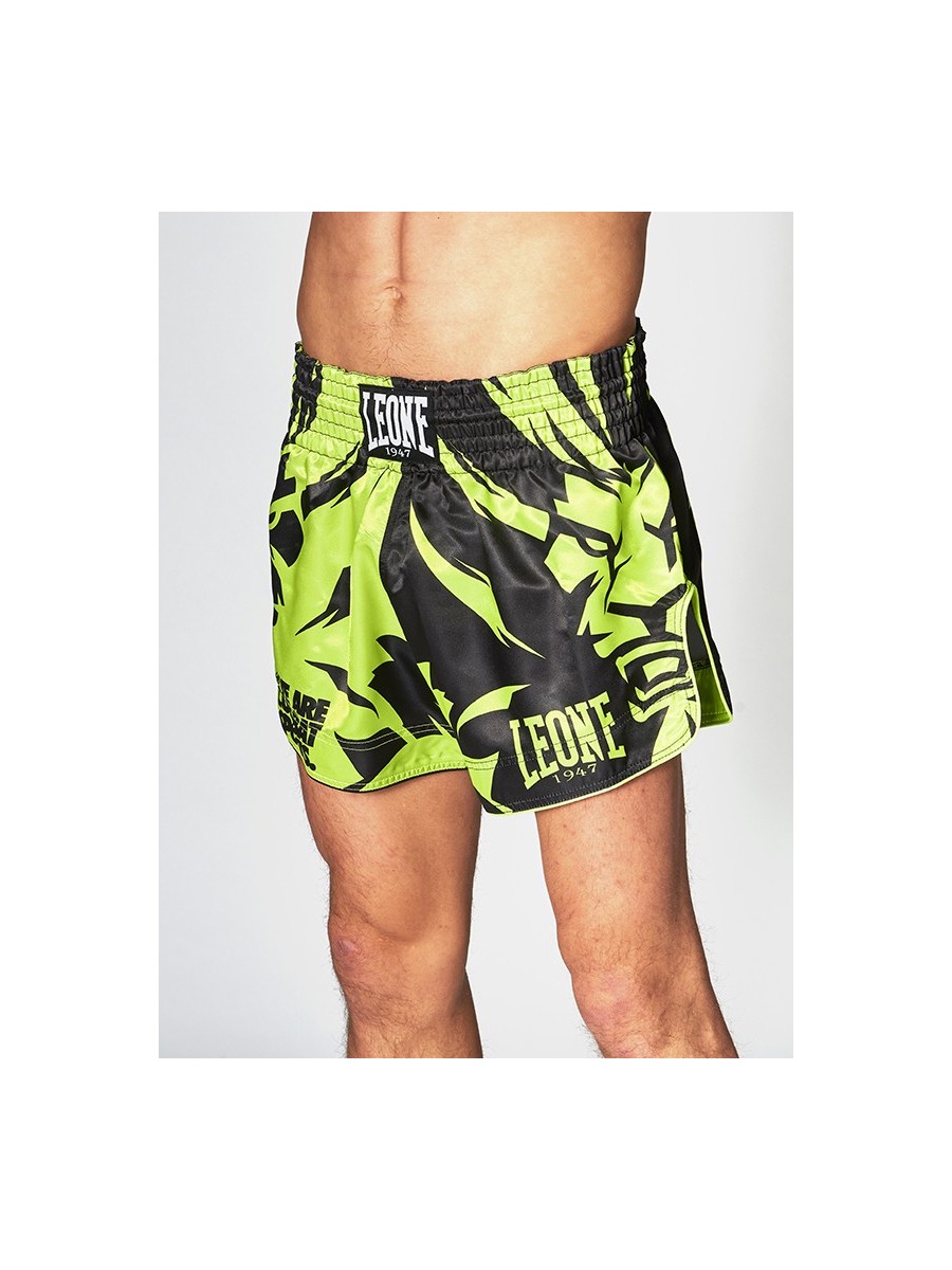 Dai disegni dell’illustratore Andrea Fiorito nascono le nuove mascot del team Leone. Quattro icone per tre leoni ed una leonessa a rappresentare le principali discipline combat. Il pantaloncino da kick/thai riprende il tema della colorazione alternata nero/fluo del guantone GN315. Il tessuto lucido esalta le linee dinamiche e aggressive delle illustrazioni. Cordoncino fluo e ampio spacco laterale. Disciplina: Kick boxing, muay thai Genere: UOMO Materiale: Satin