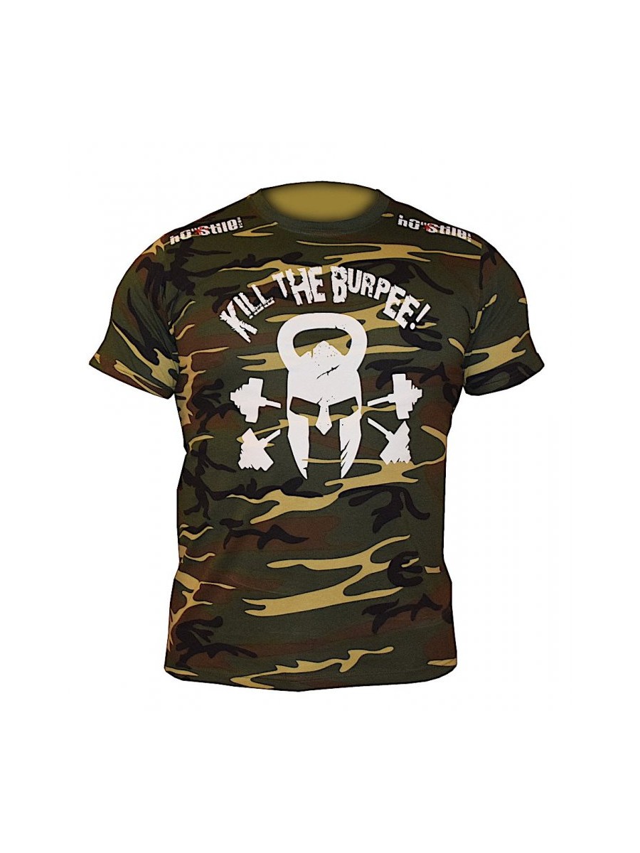 T-shirt Kill the burpee! 2.0 in 100% cotone pettinato effetto vintage. Design aggressivo ed esclusivo per questa linea dedicata al mondo del CrossFit. 100% MADE IN ITALY. 101% Ho"Stile. Colorazione camouflage woodland.